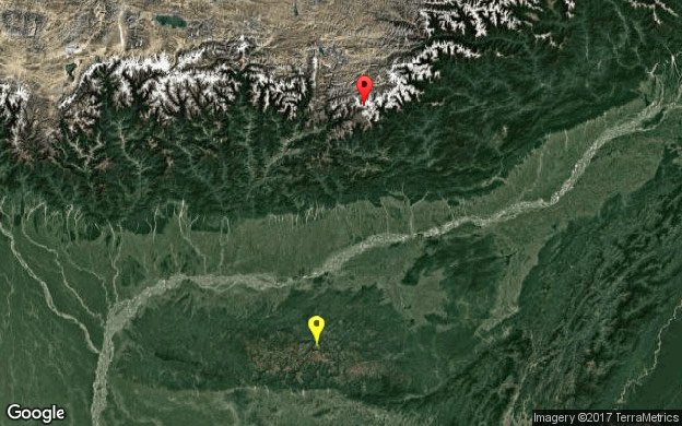 And when a colleague pointed it to me on Twitter followed by a flurry of Facebook posts by fellow Shillongites, I rushed to my laptop to do the next best thing than being in Shillong itself: Get a view of the Himalayas from Shillong on Google Earth (see image below).