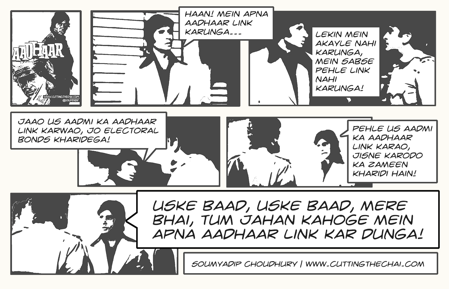 BollywoodFebruary 14, 2018 Soumyadip Choudhury 1 Share on Facebook (Opens in new window) Facebook Share on X (Opens in new window) X Share on WhatsApp (Opens in new window) WhatsApp More Email a link to a friend (Opens in new window) Email Share on Threads (Opens in new window) Threads Print (Opens in new window) Print Share on Reddit (Opens in new window) Reddit Share on Telegram (Opens in new window) Telegram Share on Nextdoor (Opens in new window) Nextdoor Share on Mastodon (Opens in new window) Mastodon Share on Bluesky (Opens in new window) Bluesky Share on LinkedIn (Opens in new window) LinkedIn Share on Pinterest (Opens in new window) Pinterest Share on Tumblr (Opens in new window) Tumblr The ‘deewaar’ of Aadhaar has people on both sides of the wall (and also many sitting on it) The deewaar of Aadhaar has people on both sides of the wall (and also many sitting on it). (Image: Soumyadip Choudhury) Share on Facebook (Opens in new window) Facebook Share on X (Opens in new window) X Share on WhatsApp (Opens in new window) WhatsApp More Email a link to a friend (Opens in new window) Email Share on Threads (Opens in new window) Threads Print (Opens in new window) Print Share on Reddit (Opens in new window) Reddit Share on Telegram (Opens in new window) Telegram Share on Nextdoor (Opens in new window) Nextdoor Share on Mastodon (Opens in new window) Mastodon Share on Bluesky (Opens in new window) Bluesky Share on LinkedIn (Opens in new window) LinkedIn Share on Pinterest (Opens in new window) Pinterest Share on Tumblr (Opens in new window) Tumblr Tags: aadhaar bollywood comics deewaarCategories: Bollywood Comics Grumbles India Movies Technology
