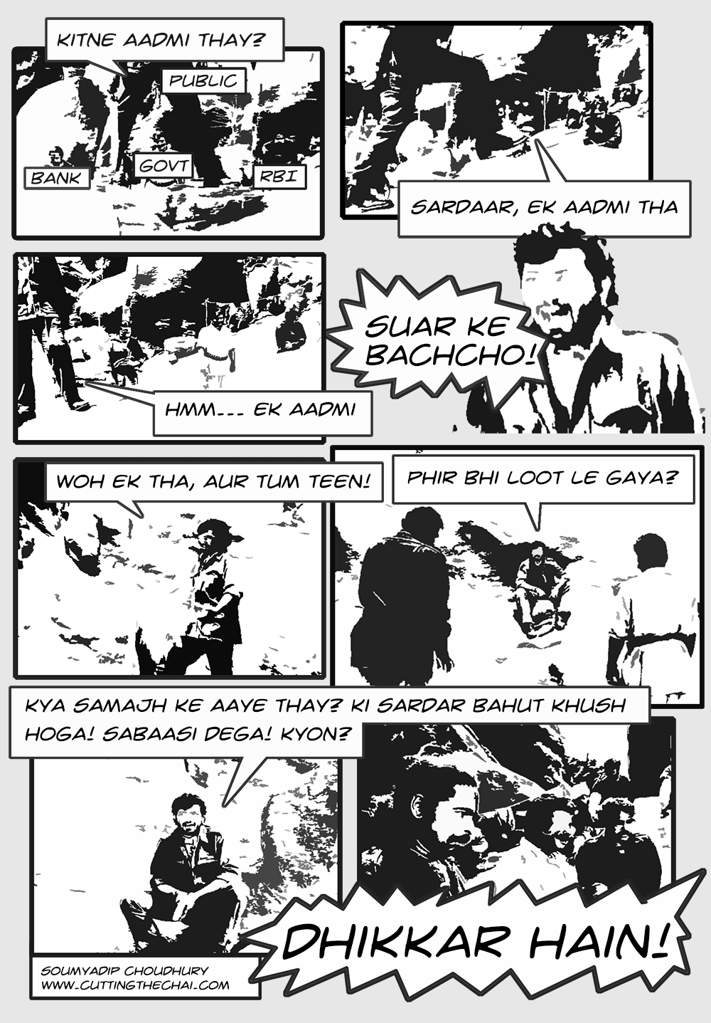 Another attempt at reimagining iconic Bollywood scenes as a critique of contemporary issues in a comic book format.
